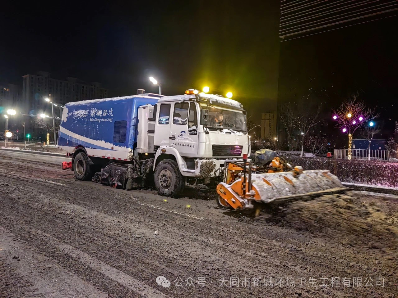 為應(yīng)對好本次降雪天氣,公司各部門相互配合做到信息暢通,反應(yīng)迅速,實時掌握道路清雪情況,及時反饋調(diào)整作業(yè)重點,新城環(huán)境公司將持續(xù)密切關(guān)注重點路段,切實維護(hù)轄區(qū)路段除雪工作,確保道路交通通暢,市民安全出行。截止目前,公司出動環(huán)衛(wèi)工1500人次、26臺多功能融雪劑撒布車、29臺除雪滾刷車、11臺除雪皮卡車。